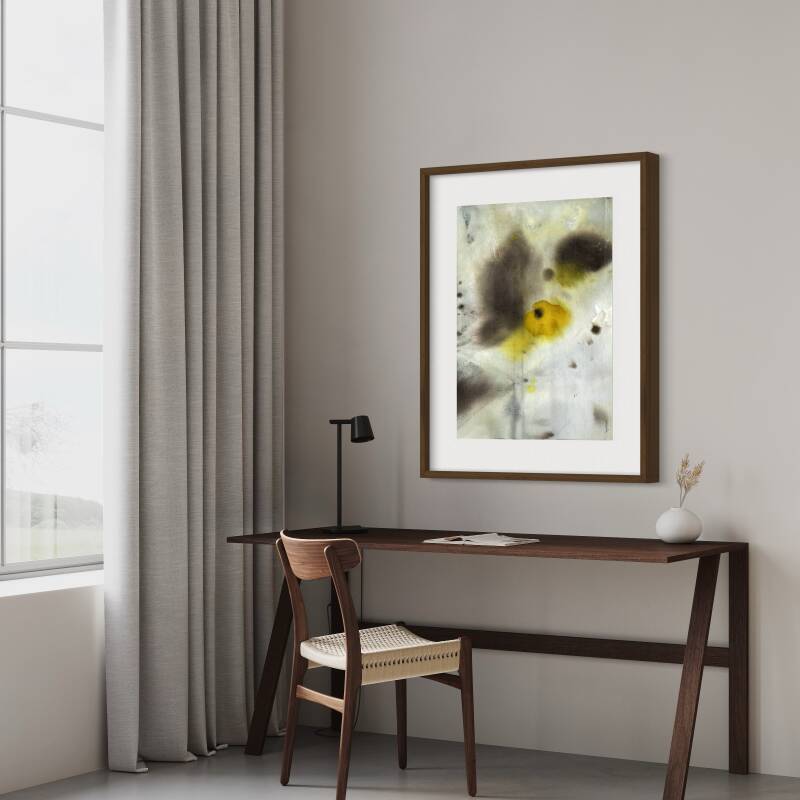 Dans le calme, l’équilibre et la douceur, cette oeuvre vous invite au silence. Ces notes marron et jaune sont une symphonie silencieuse dans la brume matinale. Créant un rêve éphémère, une toile où les mots se perdent, mais où les émotions s’épanouissent.
